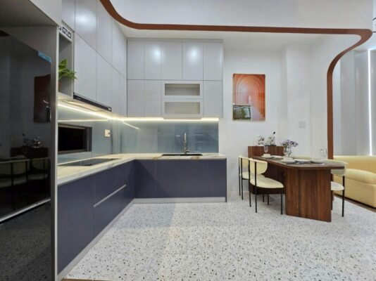 Các giải pháp như tủ treo cao, kệ mở, bàn đảo mini, hay các khoang chứa đồ âm tường sẽ giúp tận dụng tối đa diện tích, giảm thiểu cảm giác chật chội. Đặc biệt, các màu sắc sáng, lớp phủ bóng còn giúp phản chiếu ánh sáng, làm không gian thêm phần rộng rãi, thoáng đãng.